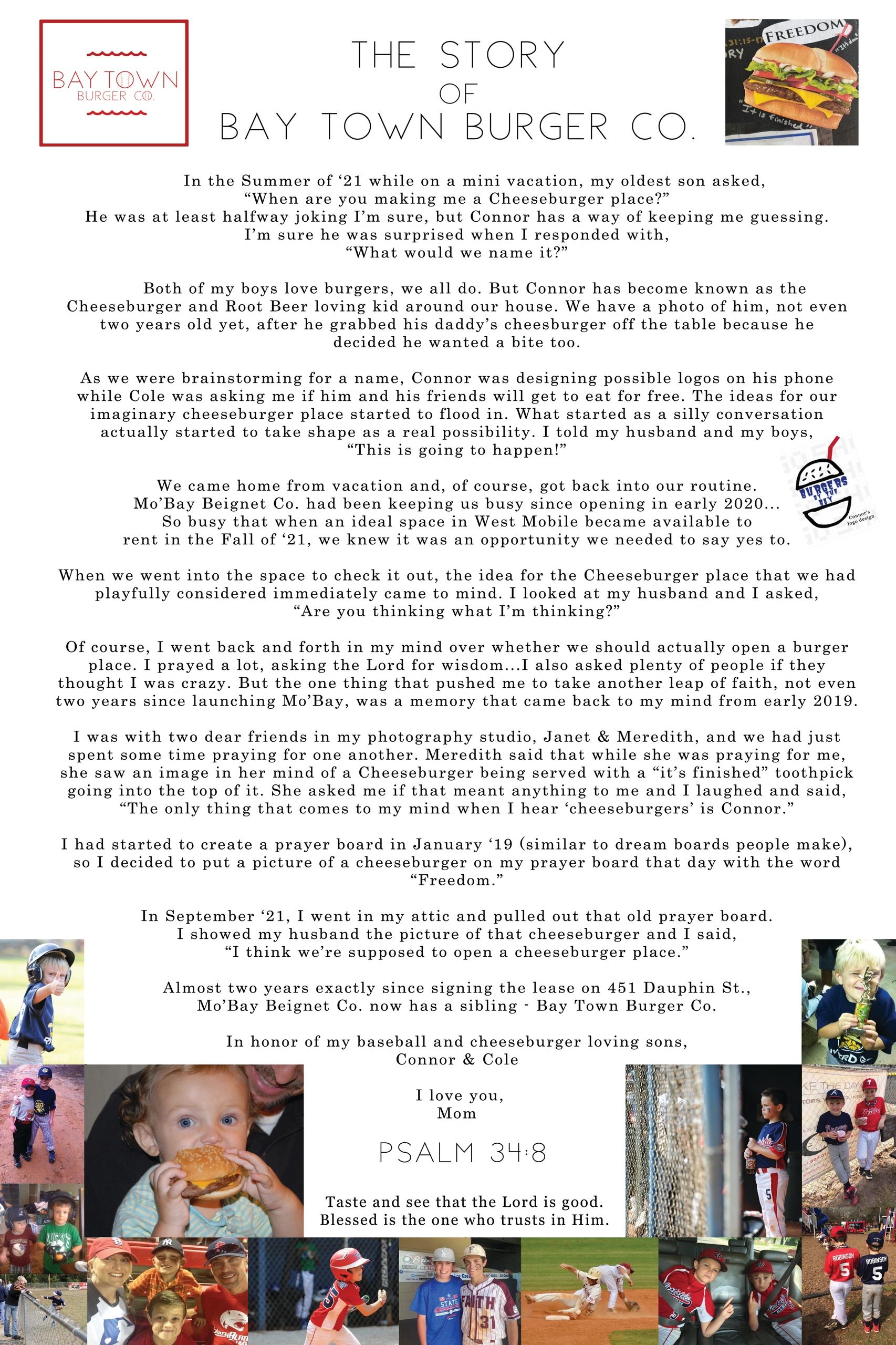 Bay Town Burger Co. was created in honor of the owner's baseball and cheeseburger loving sons.